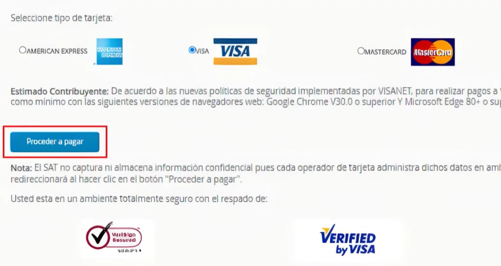 - Selecciona el medio de pago (tarjeta de débito o crédito).