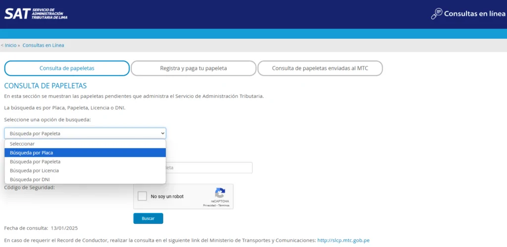 En el Perú, para consultar la papeleta del SAT (Servicio de Administración Tributaria), que generalmente se refiere a multas de tránsito o deudas tributarias municipales, puedes seguir los siguientes pasos: