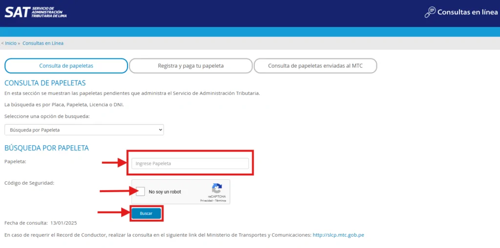 Pasos para realizar la consulta de Papeleta del SAT en línea