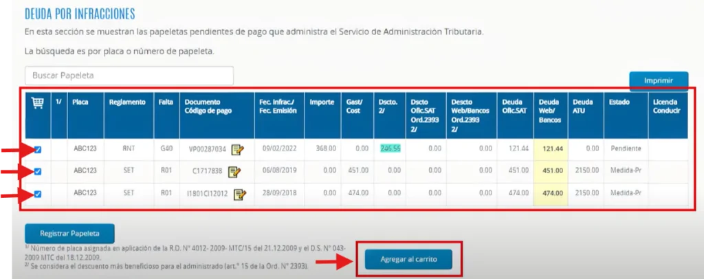 Una vez que veas tu deuda, elige la papeleta que deseas cancelar.